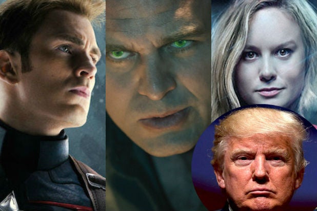 Some Marvel movie heroes seem to think the biggest supervillain they face is President-elect Donald Trump. Here’s a look at 12 stars of superhero films who like him about as much as they like Doctor Doom.