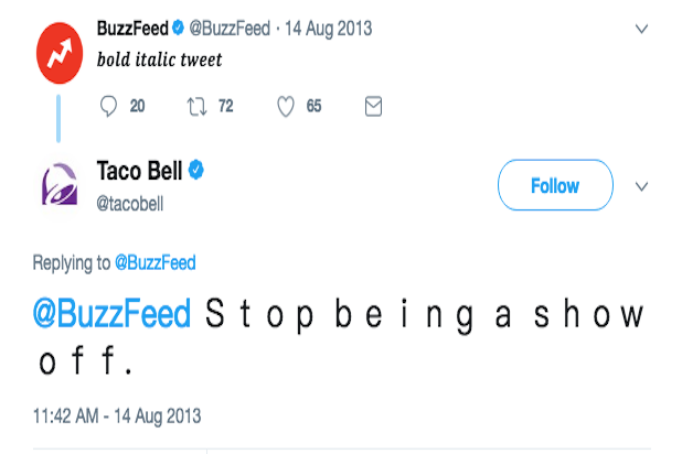 Just in case you’re thinking of flaunting your Twitter savvy, take care. Taco Bell may brutally take you down, as BuzzFeed found out to their detriment.