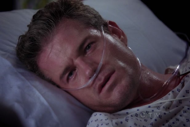 After saving a mother and child from a fiery car crash, McDreamy’s car is t-boned by a tractor trailer. His brain injuries leave him brain-dead by the time Meredith (Ellen Pompeo) arrives.