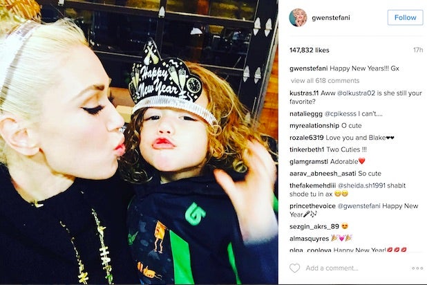 Gwen Stefani shows some motherly love to the littlest of her three boys, Apollo.