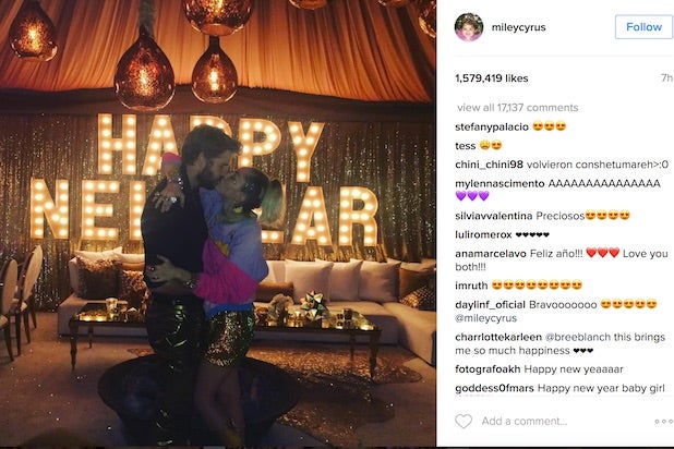 Liam Hemsworth plants one on his lady love, Miley Cyrus.