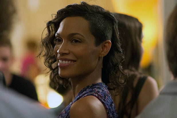 Rosario Dawson as a journalist covering Chris Rock in “Top Five.”