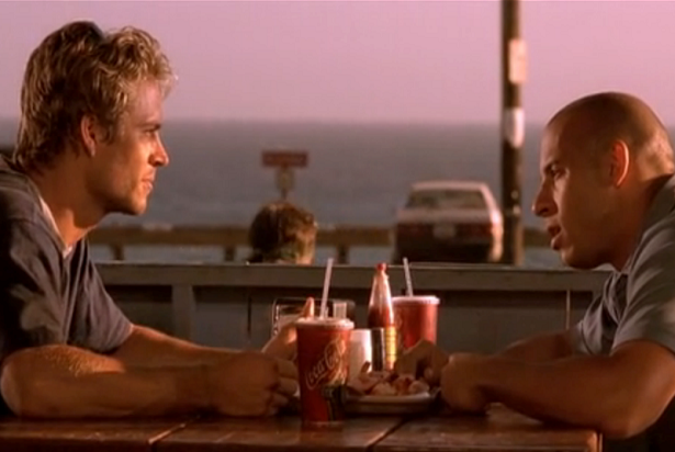“The Fast and the Furious” takes some inspiration with the Keanu Reeves-Patrick Swayze movie “Point Break,” in which an FBI agent goes undercover to infiltrate a group of surfer bank robbers. There’s another commonality: In “The Fast and the Furious,” Dom and Brian go to a restaurant called Neptune’s Net, a real place in Malibu. It’s also the restaurant in which Tyler (Lori Petty) works in “Point Break.”