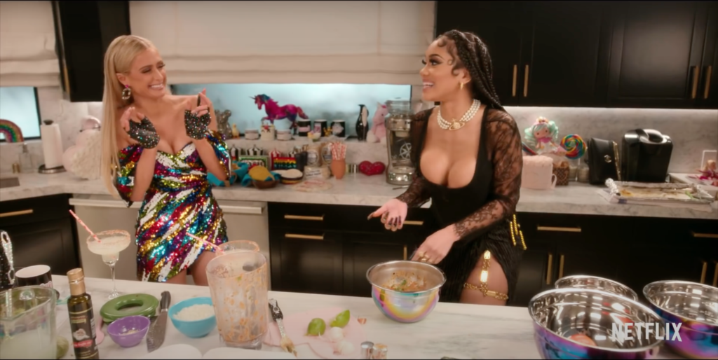 For Episode 2, Hilton brought on rapper Saweetie as her sous chef to help make her famous shrimp tacos. As the women catch up over margaritas, they begin to prepare homemade roasted salsa, which looks to be off to a mouthwatering start until the broiled veggies hit the blender.
