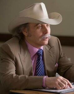 Dwight Yoakam has a terribly embarrassing role as Cecil Beaumont, a ambulance-chaser who shills his legal services on billboards, laden with lines such as “I’m your Beau!” and telling a joke to Eva to help explain a horrible setback. Some preview pieces have labeled it a comic turn; I’m labeling it something Yoakam should scratch off his resume.