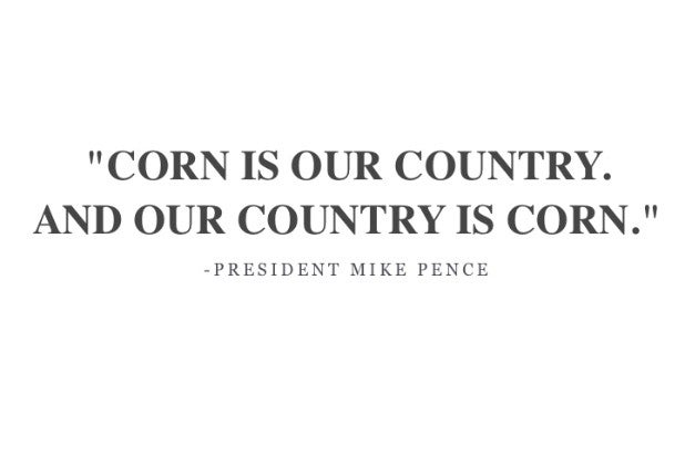The issues matter to Pence. His belief: “Corn is our country, and our country is corn.”