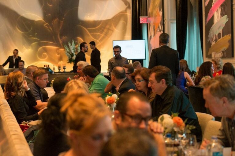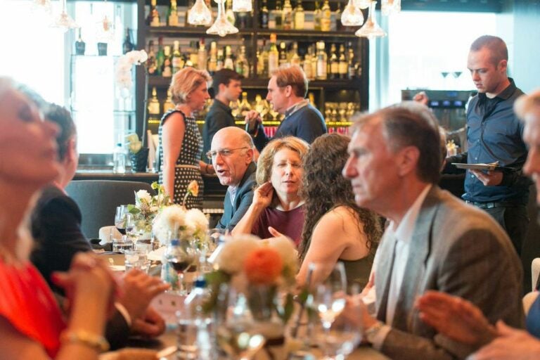 Wrap editor in chief Sharon Waxman greets guests at the event