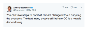 It didn’t stop with erasing tweets aimed at Trump, though. Also deleted was a post on climate change, saying it was “disheartening” people still believe it’s a “hoax.”