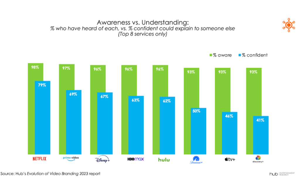 According to Hub Research’s latest annual “Evolution of Video Branding” survey, almost all respondents are aware of Apple TV+, but fewer than half felt they understood its value proposition.
