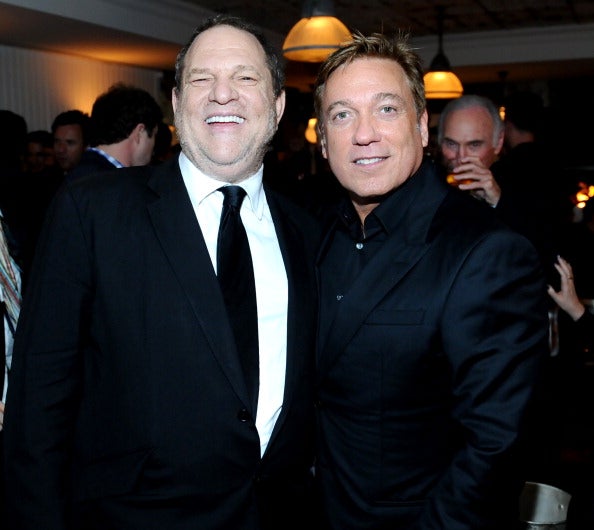 Around the time that the moguls of cheese and bread on display meant for ambiance degenerated in to actual finger food, the party was still going strong. Roberts was still on her feet with an arm slung tight around Kevin Huvane (above, with Weinstein), both of them beaming.