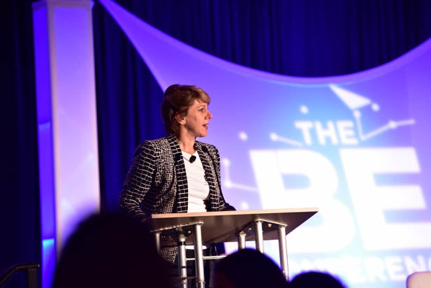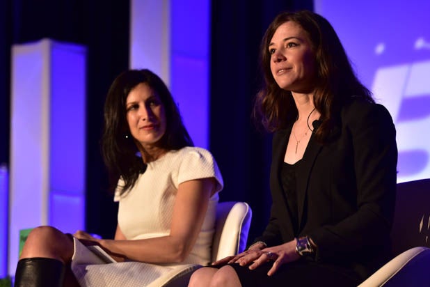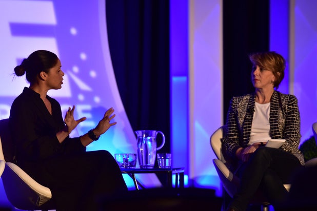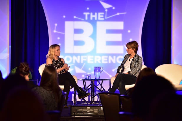 Kristen Bell (left) and TheWrap Founder and CEO Sharon Waxman kick off The BE Conference with a conversation about Entrepreneurship.