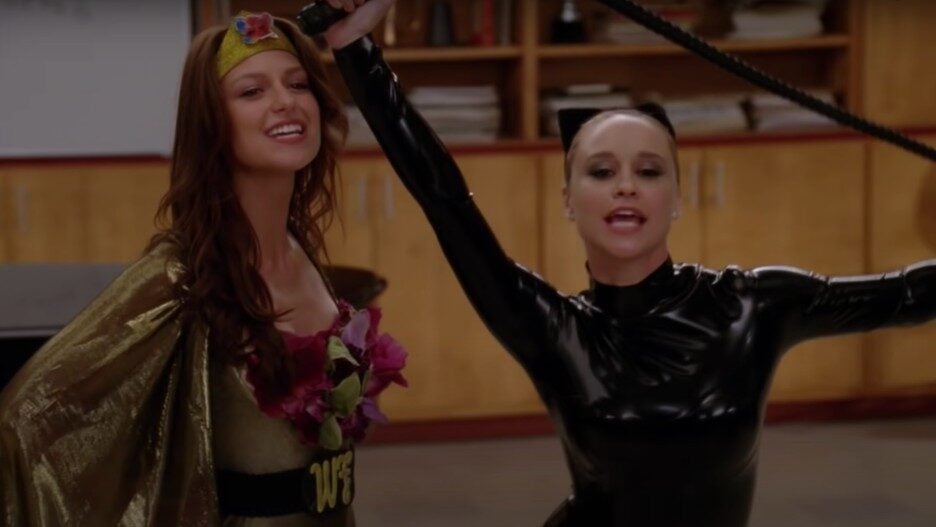 While the pair’s performance of the Bonnie Tyler hit was a bit traumatizing for Tobin in the moment, it was also incredible foreshadowing for Benoist, who went on to star in The CW’s “Supergirl” as the titular hero. That’s because in the “Glee” episode, Kitty convinced Marley to ditch her Wallflower persona and instead dubbed her Woman Fierce, encouraging her to step into her power. And that pose looked an awful lot like her current Supergirl pose. So yes, Tobin will happily accept any piece of credit for that manifestation.