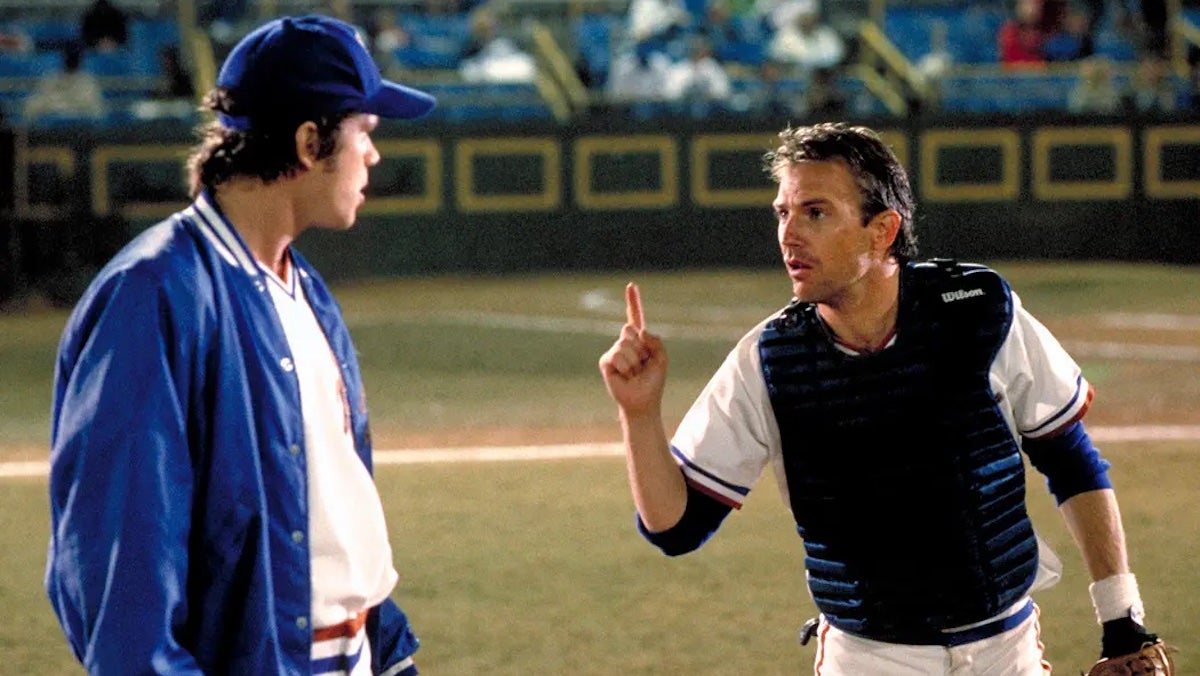 Kevin Costner is in peak form as quotable Crash Davis in this sports rom-com that has him competing with teammate Nuke LaLoosh (Tim Robbins) for the affections of groupie Annie (Susan Sarandon).