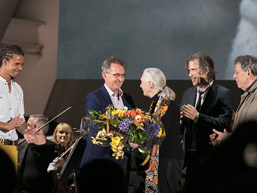 “I wish I could embrace every single one of you,” Goodall said while clutching a bouquet of flowers.