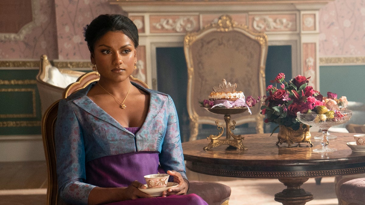 Wealthy widow Lady Danbury rules the ton. She’s like a surrogate aunt to the Duke of Hastings, having been his late mother’s closest friend. She took care of Simon, getting him the best tutors money could buy, grooming him to become the duke after his mother died and his father disowned him over his stutter. A fierce force, she wields her tongue like a weapon. Underneath it all, though, she’s a true romantic at heart and was rooting for Simon and Daphne to get together. In Season 2, she’ll be sponsoring the Sharma sisters – Kate and Edwina – as they arrive from India for their debuts. Andoh’s recent credits include roles in “The Witcher” and “Liar.”