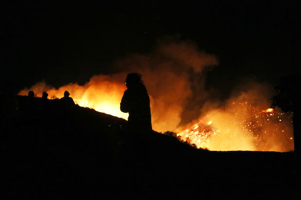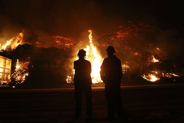 Firefighters monitor the Thomas Fire along the 101 freeway north of Ventura. Taken on Dec. 7, 2017.
