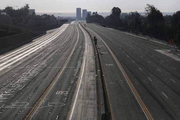 A desolate stretch of freeway in Los Angeles.