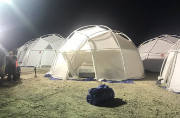 “In case you’re wondering,” one reveler wrote, “those ‘cabanas’ are actually disaster relief tents.”