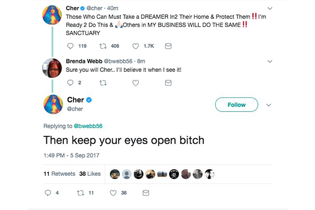 — Cher (@cher) September 5, 2017