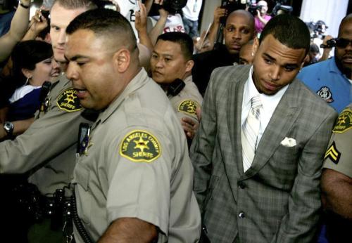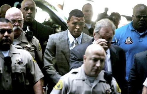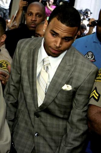 R&B performer Chris Brown struck a plea deal with the L.A. District Attorney Monday in his criminal case for assaulting Rhianna in February, after the two attended a pre-Grammy party and got into an argument over another woman. His official plea was to the charge of "assault by means likely to produce great bodily injury." The other count — criminal threats — will be dismissed at his Aug. 5 sentencing. (All photographs by Jonathan Alcorn.)