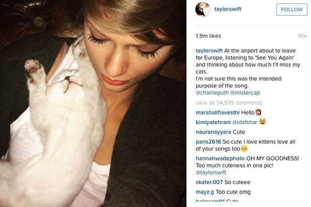 Deadpool wears a T-shirt with the names Olivia and Meredith, Taylor Swift’s beloved cats, on it.