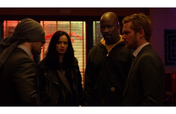 Luke Cage (Mike Colter), Jessica Jones (Krysten Ritter), Iron Fist (Finn Jones) and Daredevil (Charlie Cox)
