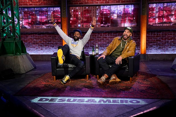 Hosted by Desus Nice (Daniel Baker) and The Kid Mero (Joel Martinez), “Desus and Mero” is the duo’s follow-up to their late-night talk show on Vice. The series features the duo chatting with guests at the intersection of pop culture, sports, music, politics and more, as well as giving their take on the day’s hot topics in their signature style in front of a small live studio audience from New York City.