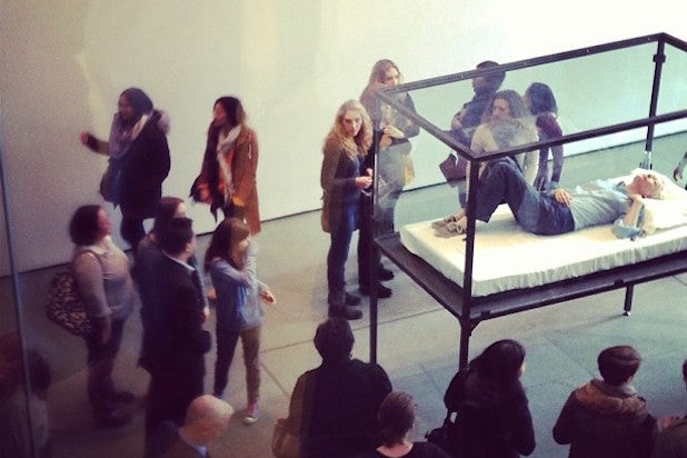 Swinton made a lot of noise with the press and with art critics by literally not making a sound. For hours at a time, Swinton came to the Museum of Modern Art to sleep inside a glass box. The piece, called “The Maybe,” was Swinton’s way of evoking quiet contemplation and thought. She wasn’t the first performance artist to sleep inside a museum, and in fact, her 2013 rendition was a remake of when she performed in 1995 with artist Cornelia Parker.