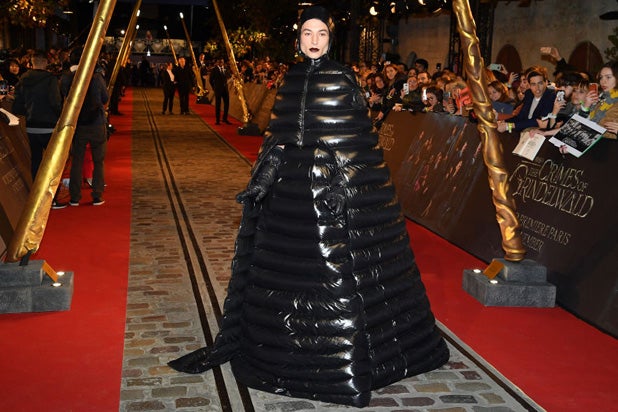 His latest outfit, which he wore on the red carpet to the premiere of “Fantastic Beasts: The Crimes of Grindelwald” in Paris Thursday, basically said, “I see you Lady Gaga and Bjork, and I raise you this.”