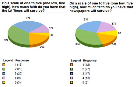 This, according to a survey by something called the Journalism Shop, which polled 75 former LAT employees.