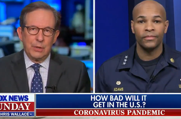 “Fox News Sunday” anchor Chris Wallace denounced U.S. Surgeon General Vice Admiral Jerome Adams Sunday when the Trump appointee compared the coronavirus crisis to smoking and opioid usage.