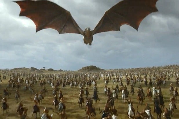 Bad news for the Lannisters: It’s the Dothraki, led by Daenerys riding Drogon. She roasts part of the Lannister line as the Dothraki ride in.