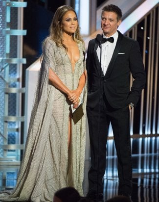 Just read the teleprompter, Jeremy Renner. It was the only thing asked of you. Renner complimented Jennifer Lopez’s anatomy as they presented the award for best actor in a Mini-Series or Television Movie. “You’ve got the globes too,” he quipped, to her shocked laugh. He just had to go there, didn’t he?