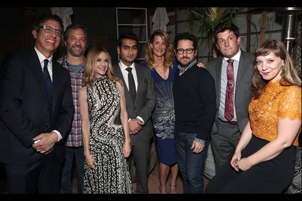 Later in the day, they had a social at Estrella in West Hollywood. The celebrants included (from left): Ray Romano, Judd Apatow, Holly Hunter, Kumail Nanjiani, Laura Dern, J.J. Abrams, and at the far right, Emily Gordon.
