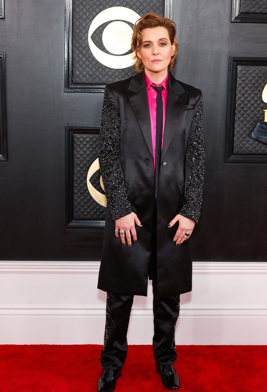 The singer rocked a black suit with sequin sleeves, making a stunning contrast with Carlile’s hot pink collared shirt.