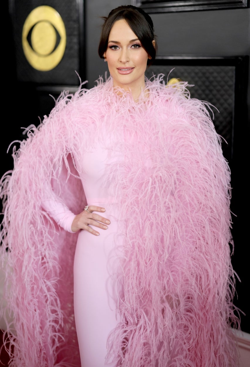 Musgraves showed up pretty in pink with a gown shrouded in a feathered cloak.