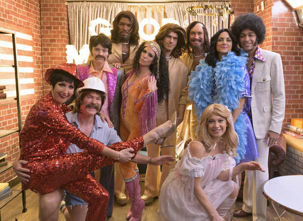 ABC’s “Good Morning America” wasn’t just “Footloose”: The whole cast had a 1970s-themed dance party, DJ’d by George Stephanopoulos. Co-anchors Robin Roberts (Donna Summer) and Michael Strahan (The Bee Gees) boogied with Lara Spencer (Liza Minnelli), Ginger Zee (Olivia Newton-John) Amy Robach (Cher), Sara Haines (Sonny), Sam Champion (The Village People), Whit Johnson and Gio Benitez (The Bee Gees) to disco classics.