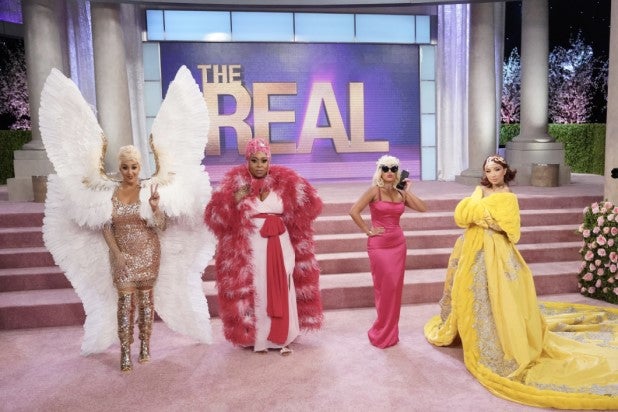 The ladies of “The Real” were inspired by recent Met Gala looks: Adrienne Houghton was a pretty-in-pink Lady Gaga, Loni Love channeled Lizzo, Tamera Mowry-Housley made an angelic Katy Perry, while Jeannie Mai donned a replica of Rihanna’s infamous omelet gown.