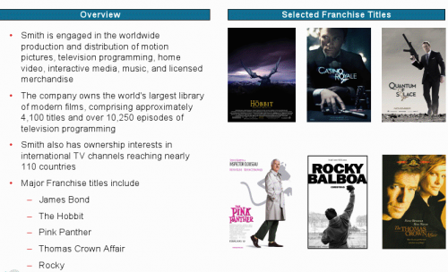 Smith refers to the unnamed company being targetted for takeover. The said company happens to have made such movies as "The Pink Panther," "The Thomas Crown Affair" and the James Bond franchise: