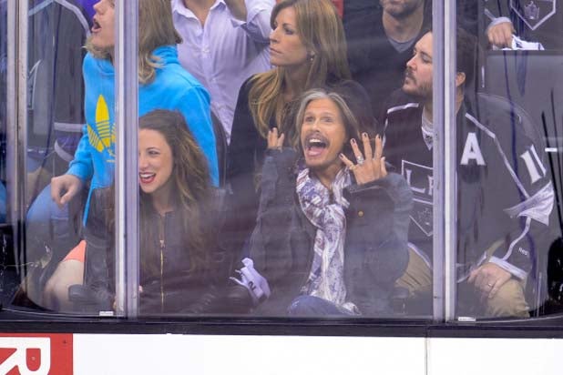 Steven Tyler cheers for the Kings while Wil Wheaton looks on at the Staples Center