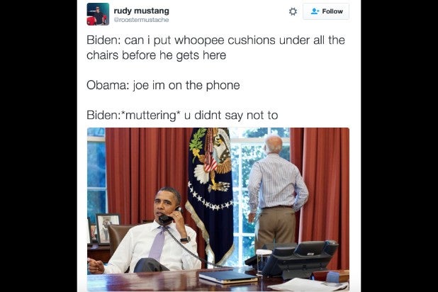 No one is more upset about Donald Trump becoming president than Joe Biden — at least in meme form. The vice president has gone viral as the subject of internet memes that show him trolling the president-elect.