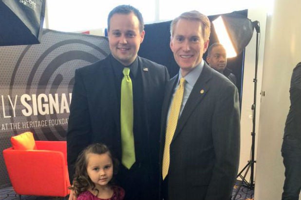 Duggar is seen with Oklahoma Senator James Lankford in a picture posted on Twitter on February 27.