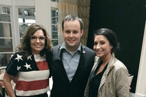 Duggar poses with former vice presidential candidate Sarah Palin and daughter Bristol in a photo tweeted on Feb. 26.