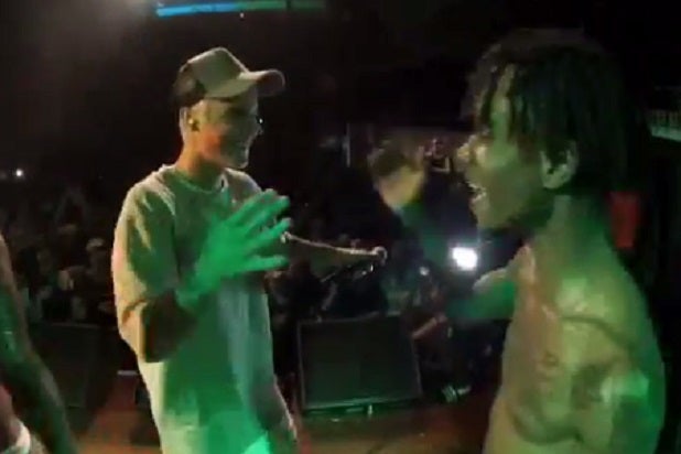 According to TMZ, Bieber’s performance hit a couple of high points — specifically, when the singer took a hearty pull from a bottle of Hennessy and puffed on what appeared to be a joint.