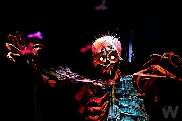 Jaw, finger, hand and arm movements were controlled by an animator, with the monster “essentially hanging from the ceiling,” production manager Dan Pascall said. “He’s a giant marionette puppet, really.”