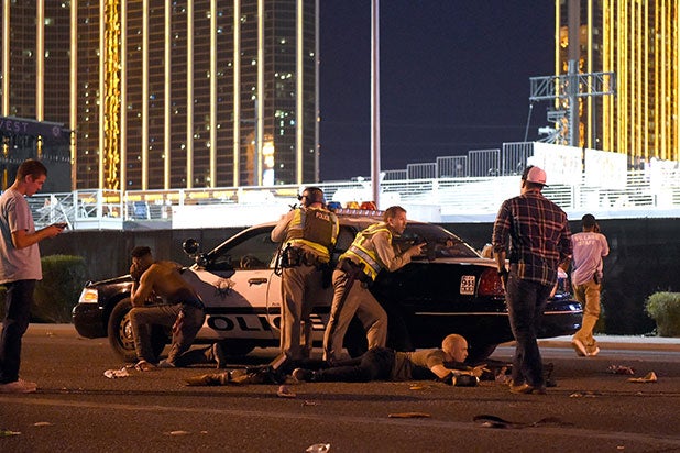 Police officers outside of the Route 91 Harvest Festival.