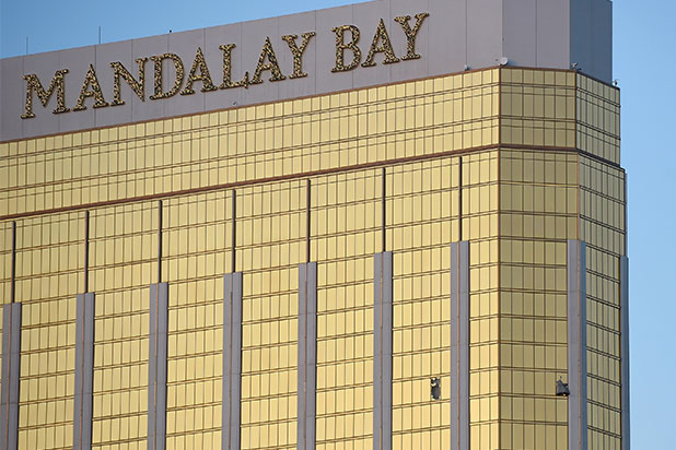 People on the grounds after a shooter opened fire from the 32nd floor of the Mandalay Bay hotel.