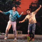 Here, Daniel J. Watt’s You No. 2 (as his character is identified in the program) holds court, though he has lost track of what day it is and suspects his unnamed lover is “probably not even thinking about me. You’re probably living this beautiful life.” There are hints of external dystopian calamity — he wonders if the sky is “still purple” and the rain “still burn(s)” — but also of possible psychosis and clinical depression. A hazmat-suited stranger shows up occasionally to dispense pills to our hero, and to check with a flashlight that he’s actually swallowed them.