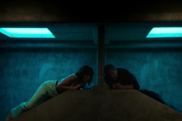David accidentally teleports Syd and himself out of the building and into the lake