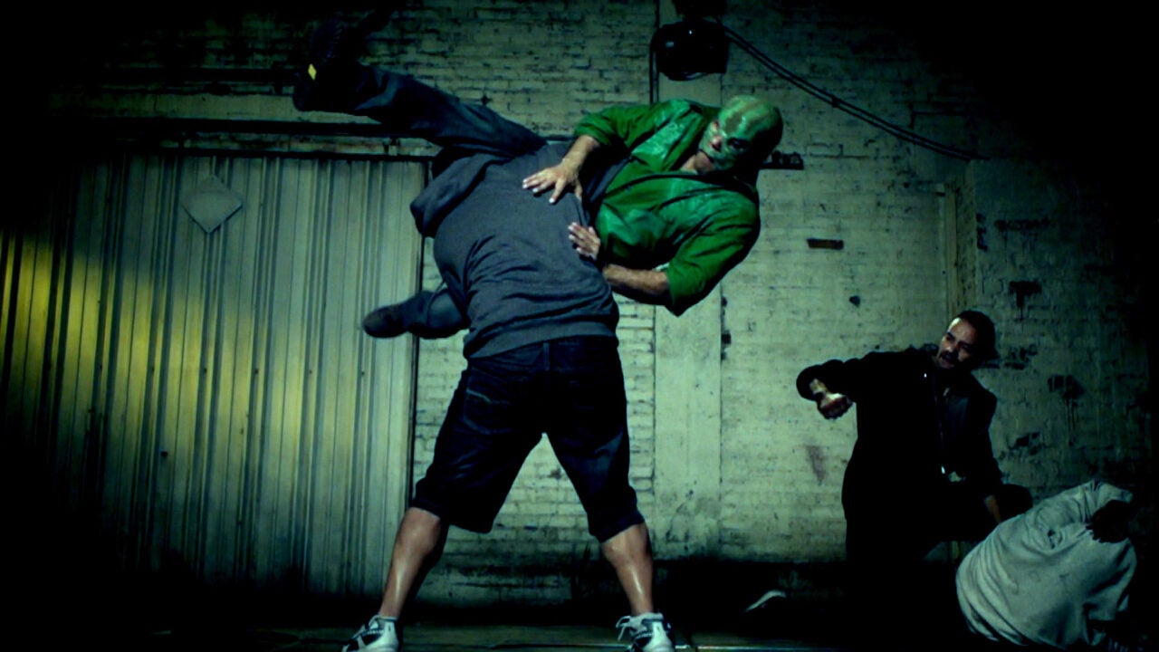 Episode 202: PJ Black’s Motorcycle Fight: “Inspired by the motorcycle gang fight from the Ridley Scott film ‘Black Rain.’ It’s always fun when we’re able to take ‘Lucha’ out into the real world. So taking over a classic location and closing down streets for the motor cycle chase was awesome.”